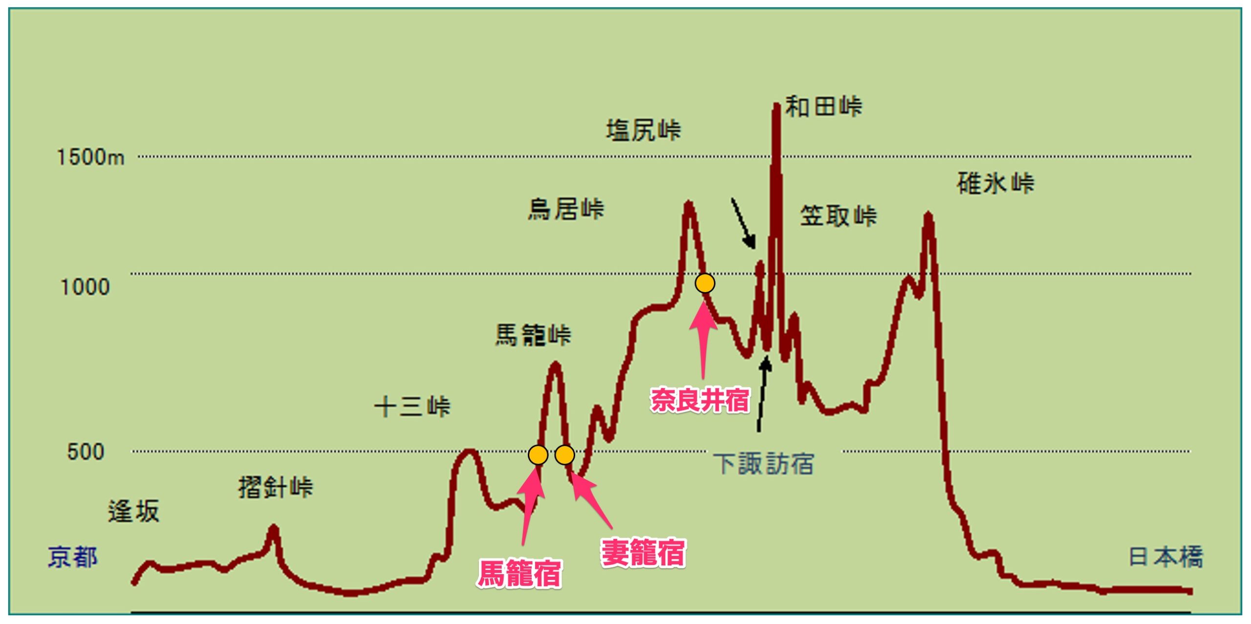 馬籠宿と妻籠宿を隔てる標高801mの「馬籠峠」も、見どころ満載。